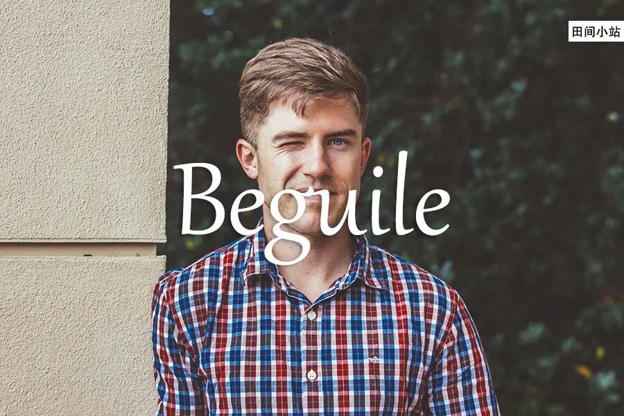 从这个概念出发,还可以用 beguile 引申指“迷住、吸引、陶醉”,主要指通过或者好似通过诡计来引起兴趣,比如: