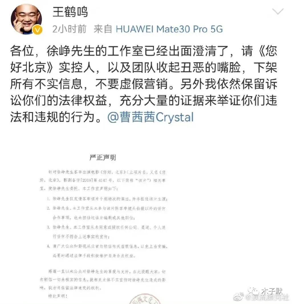 在徐峥做出回复以后,王鹤鸣开始不再死咬着徐峥不放,而是把矛头专门对准了导演曹茜茜。