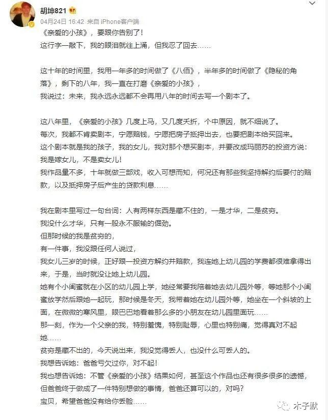 而电视剧《亲爱的小孩》是胡坤编剧并导演的一部温暖的作品。