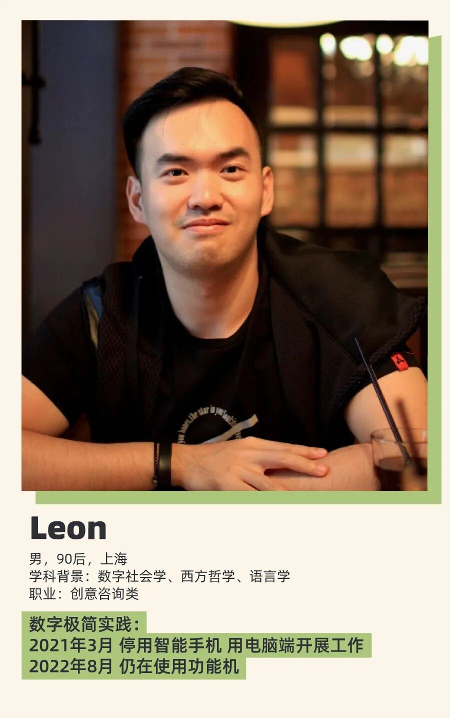 去年3月份开始,这位生活在上海的90后,把智能手机换成了一部只能打电话和发短信的“旧手机”,从而开始了一种“勿扰”的现代生活。手机终于不再是身体的一部分了,眼睛和双手都获得了解放。等公交和乘地铁的时候,他不必再低头应付那些未读的小红点,反而抬起头来观察周围人的表情和神态,甚至是地铁上的广告,“原来每个城市的广告风格都大不一样”。吃饭的时候再也没有下饭视频了,不过好奇怪,感官似乎被打开了,他有更多的注意力去关注饭到底好不好吃,菜的味道怎么样?Leon并不是唯一选择这么做的人。一群倡导“数字极简”的年轻人正在通过“扔掉手机”来反思自己和数字技术的关系。在豆瓣,有超3万人加入了“反技术依赖小组”,有超2万人加入了“数字极简主义者小组”。他们隔绝电子设备、减少屏幕时间、删除社交软件,开始了一系列五花八门的“数字极简”尝试。“数字极简主义”的概念首次出现是在2019年,麻省理工计算机博士卡尔·纽波特(Cal Newport)在他《数字极简主义》(Digital Minimalism)的书中提出,“数字极简”是一种技术使用理念,将在线时间集中于少数精心挑选且最优的数字活动,然后享受错过其余不重要的活动。他建议,花30天时间暂停非必要的科技,反思它们对于生活的意义,并重新探索和发现那些对人们而言珍贵的事物。所以“数字极简”就是不用手机吗?作为互联网的原住民要怎么加入“数字极简主义”,成为“数字极简主义者”到底会给普通人带来哪些改变?后浪研究所和3位不同领域的年轻人聊了聊,他们的“数字极简”实践各有不同。有人停用智能手机超过一年,有人删除所有社交软件,还有人为了逃离算法开发了反算法App。不知道此刻正用智能手机看文章的你,看完后会不会也想“扔掉手机”?停用智能手机1年,我的各种感官复活了