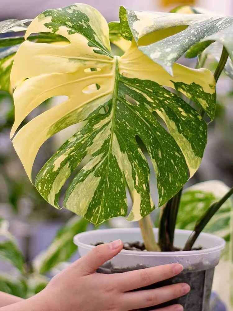 在狂热绿植迷的眼中,天价交易早已不是什么稀奇事。自2021年中,海外热植风吹入国内,潮流玩家们毫不吝惜,为了几片叶子一掷千金。在淘宝直播间,曾有主播创造了一夜上百万的营销额,最贵的一盆焦糖大理石蔓绿绒成交额近7万元,一片叶子就上万。但泡沫来得快、退得也快。2022年2月起,许多品类的热门绿植价格拦腰砍半,6万的植物掉到3、4万元;曾经500元的绿天鹅绒海芋,现在店里只卖16.8元。越来越多曾经让人高攀不起的热植,从“贵货”过渡到“普货”,在更大规模的年轻人圈子里引爆了。洒金龟背竹,直播间定价2-3k