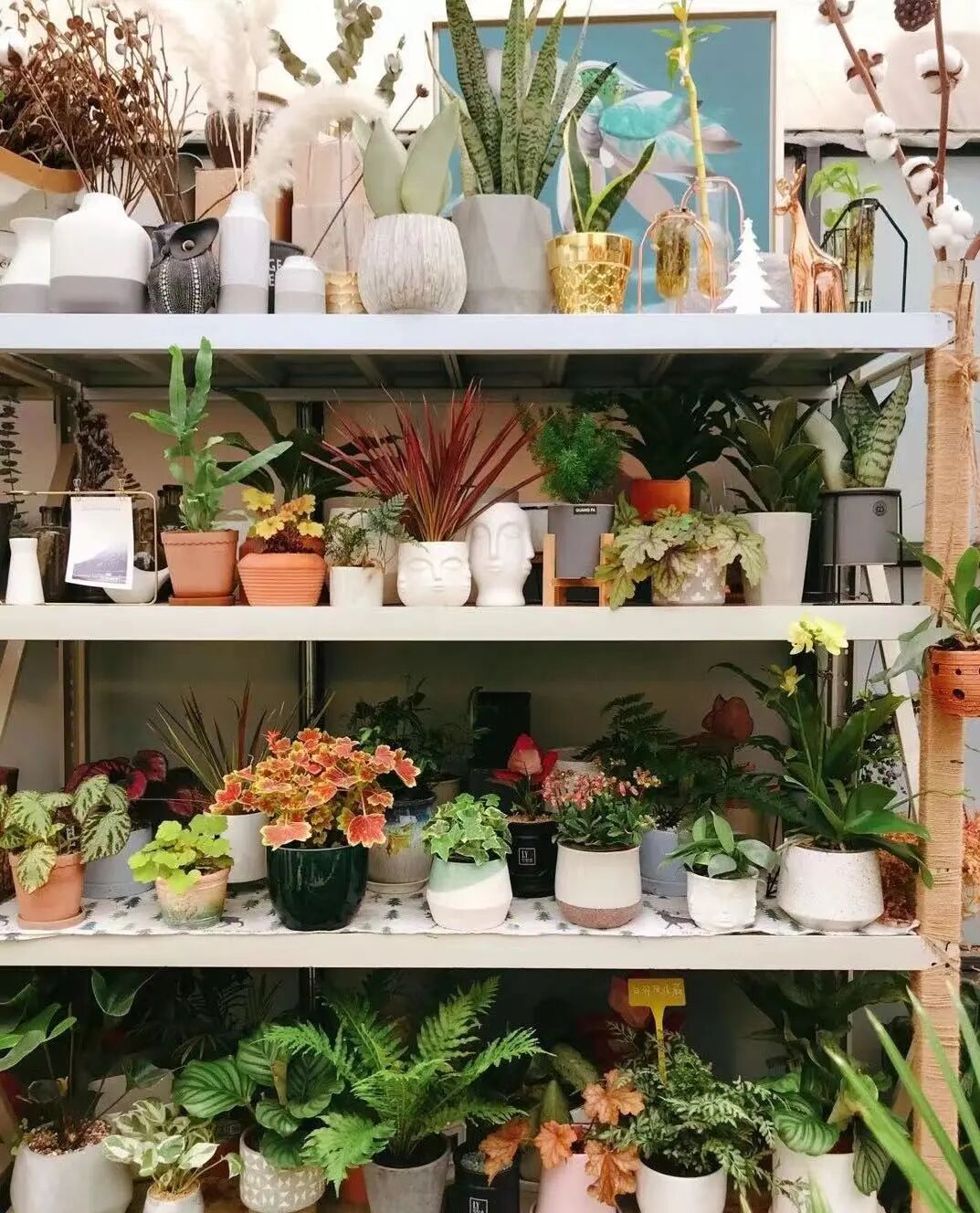 见植君的“植物美学实验”从南京的一家传统花鸟鱼虫市场开始的。还是2017年,见植君30岁出头,受不了互联网公司的工作压力,从某知名软件企业辞职,在花市租了个20平方左右的小摊位,专卖观叶绿植。花市的风景非常老派,一看就是爸妈辈的心头好。80%的店铺摆出的都是常见的花卉,栀子、月季、绣球、茉莉、铁线莲……争奇斗艳,大红大紫。那能看到什么室内绿植呢?发财树、富贵竹、幸福树,装在写着“福如东海”的青花瓷和紫砂盆里。按他的话说,太过老气,处处透露着暴发户气质。这里规整地摆着各种小盆栽,盆器也没有那么浮夸——为了贴合观叶绿植的“性冷淡风”,他们换了一批纯色的盆器,赭石色、陶土色、纯白色。乍一看去,摊位灰白色的格子间里点缀着几抹冷静的绿。传统供给和新锐需求间存在很大的断层。而绿植尤其能吸引年轻人,这种热忱,和压力相伴而生。就在这个传统的花鸟鱼虫市场,见植君的店铺吸引来了不少偏年轻的客户群体。捂脸人便是其中之一。那时,他尚是南京一家地产公司的连轴转社畜。一个偶然,他来到见植君新开没多久的绿植摊子观摩,一下子被植物们吸引了,留下来做了一段时间兼职。绿植店里,体力活并不轻松,却让他觉得生活没那么紧绷了——工作8年了,他没有一天能睡得踏实。脑内总是循环播放着那些明天要做的事情,压力让他逼近崩溃,他一度认真想过“不应该这样活着”。置于植物的包围中,他觉得自己被重新拉入到原生环境里。小时候,自己在农村也是每天和植物打交道。这之后到城市定居,在钢筋水泥的格子间里赚钞票,一直在离自然越来越远。这种强烈的归属感,推动着他,想大胆地做一些自己“发自内心认同”的事。绿植摊子开了近一年了,获得的正反馈越来越多了,乃至经常有来绿植摊子的客人问他们:“你们怎么不换个地方?你们店的气质和花鸟鱼虫市场格格不入啊。”2018年,捂脸人决定,和见植君一起,合伙把摊子开进市中心,在南京证大喜马拉雅中心开了一家绿植主题咖啡店。“见植Plantopia”品牌也随之诞生了。Plantopia是Plant和Utopia的结合,寓意在植物界创造一个与世无争的乌托邦。捂脸人始终觉得,绿植在室内空间的魅力还没有被完全开拓出来。观察一下不难发现,只要室内有植物,那里永远是顾客们拍照打卡的高频角落——它有着天然的吸引力,不分男女老少。喜欢花的人,爱的是大开大合的、短时的美好灿烂。而绿植令人欣赏的是全周期生命力,绿植不分季节,全年稳定。花开终有败,绿植,你知道它只会越来越好。“很少有人能讨厌绿植,就算他没有那么热爱,但看到了之后,大概率是会喜欢的。”捂脸人说。2019年,他正式辞去了地产公司的工作,全心投入到热爱的植物领域。![]()