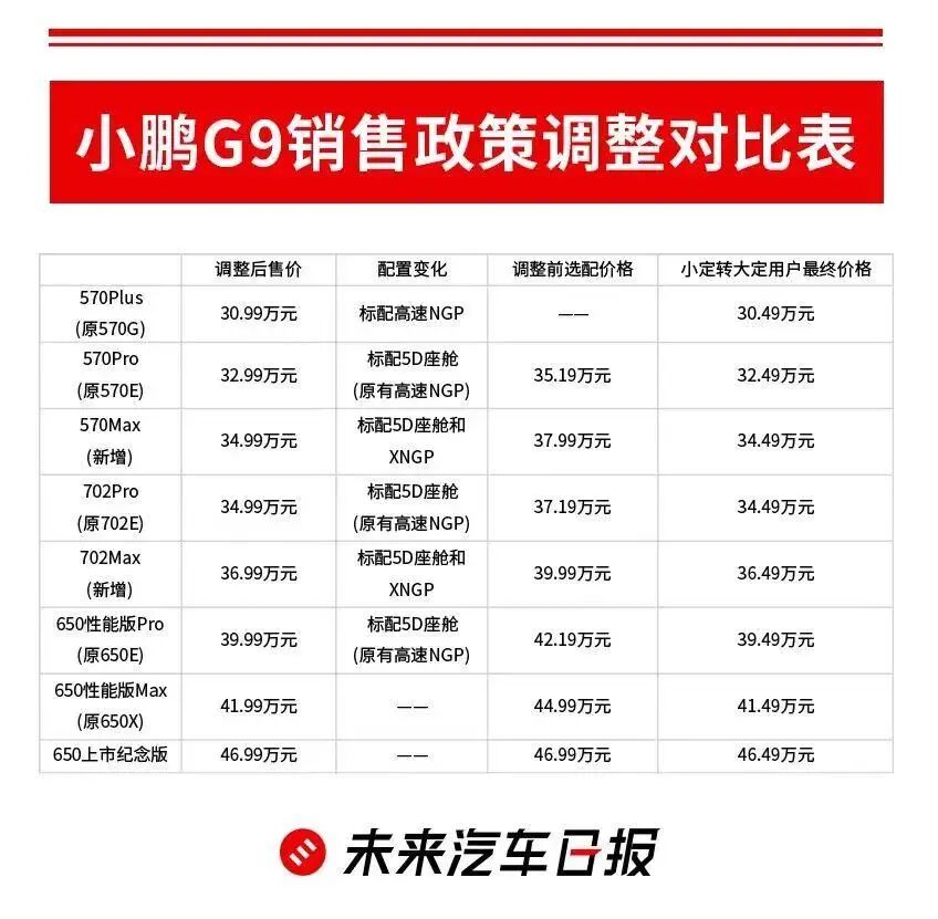 小鹏G9前后销售政策调整 未来汽车日报制图
