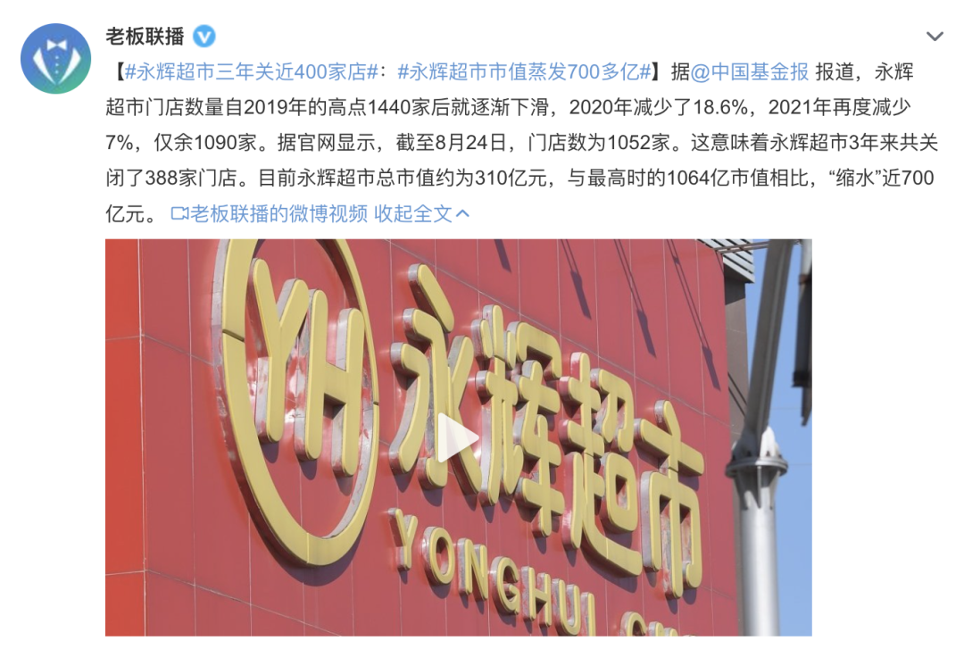 前不久,#永辉超市三年关近400家店#