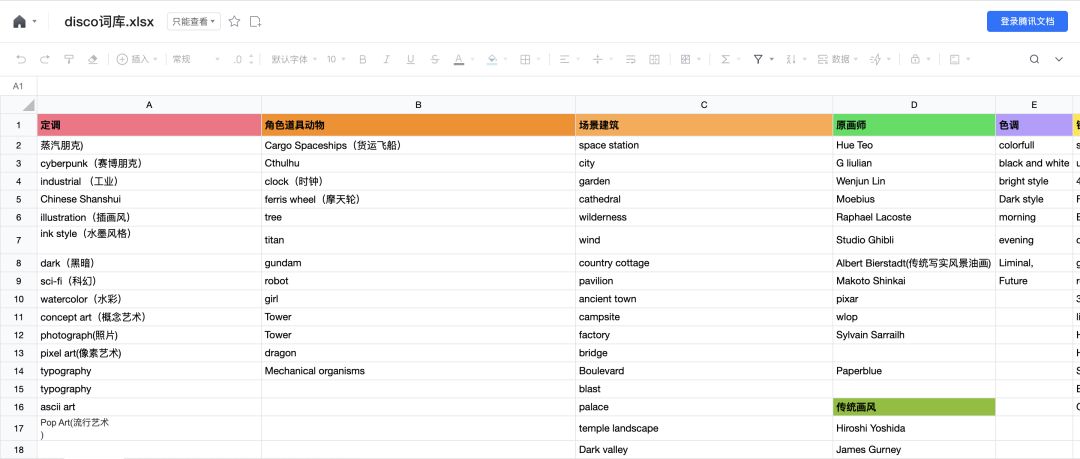 网友发起了Disco Diffusion词库共享计划