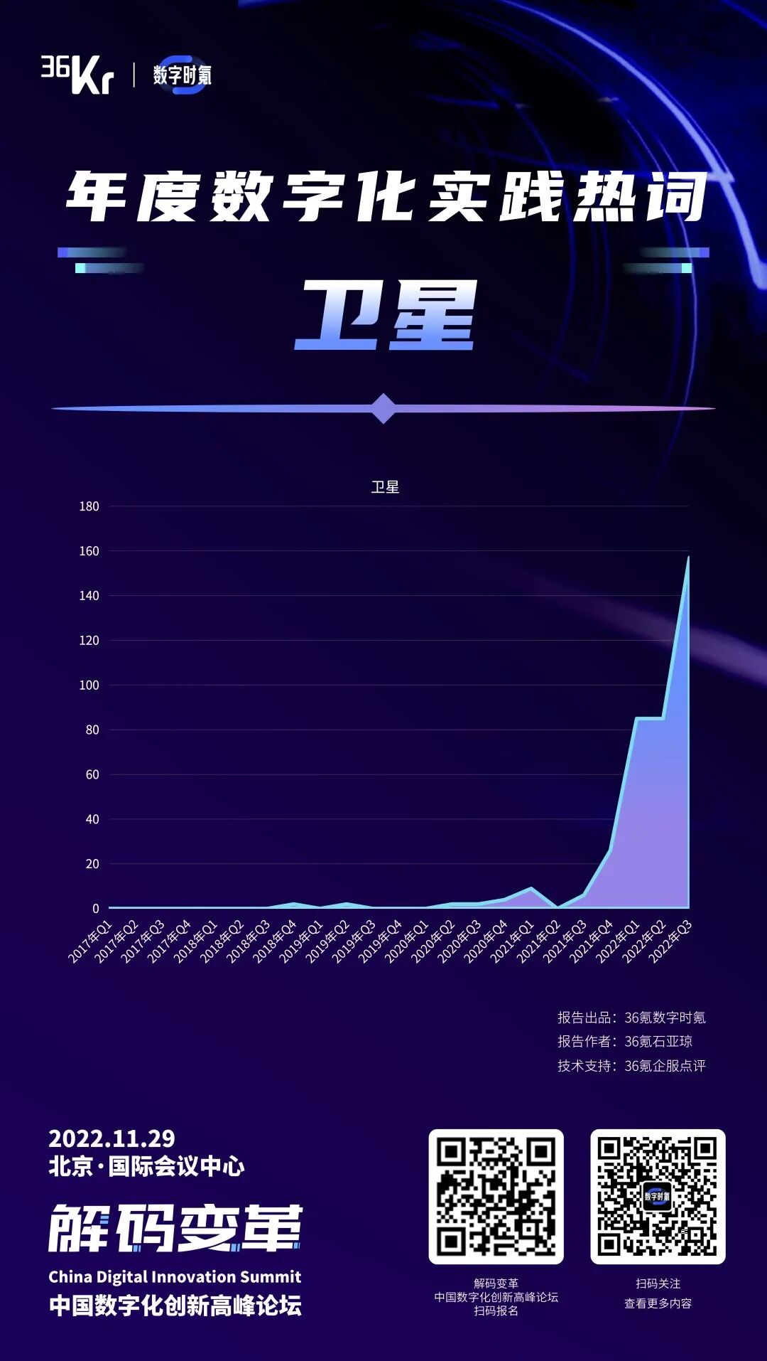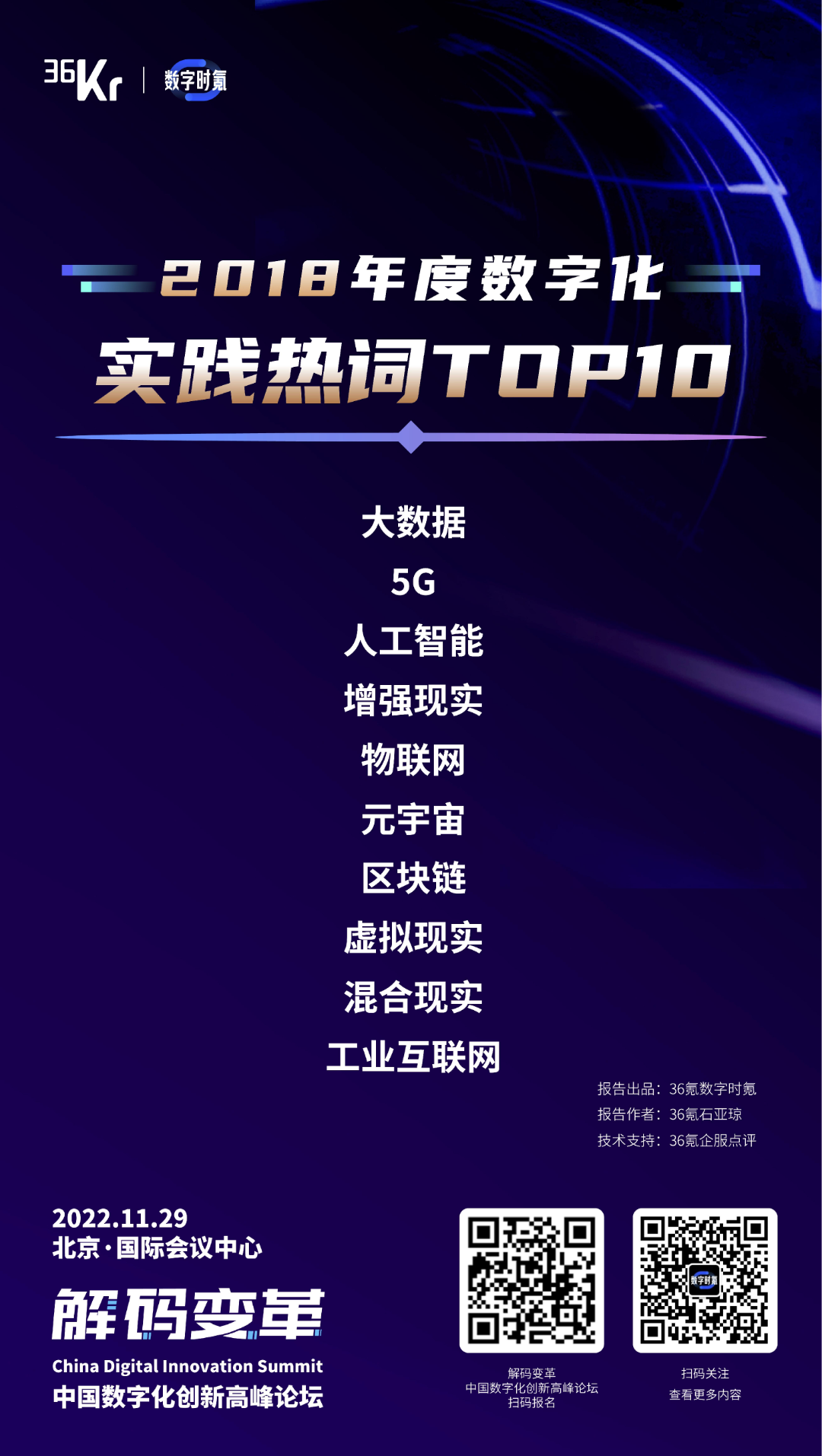 36氪特色的答案是什么?我们设想过多种描摹数字化的方案,并最后选择了现在的这个方案 —— “数字化实践热词”。我们希望以一种观察者的感性视角,结合理性的技术统计,尽可能还原中国数字化的状态。