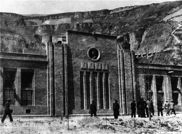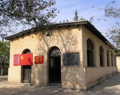 延安的杨家岭是当年中共中央所在地。图中左方为当年中共中央办公厅,右为当年中共中央礼堂。