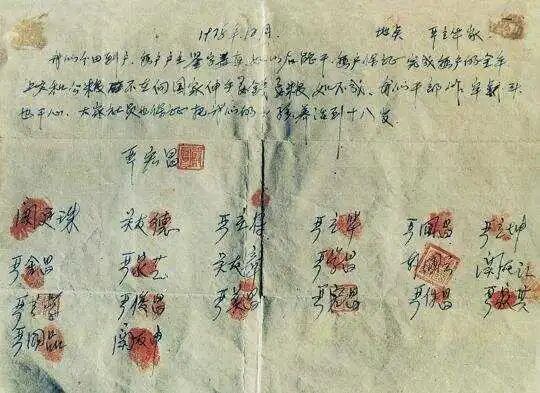 小岗村农民摁下的十八个手印。