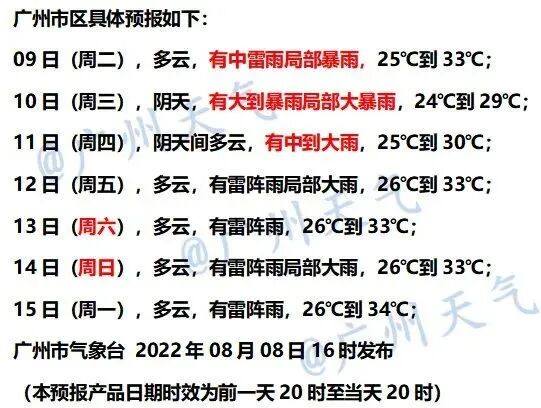 据@广州天气 预计,受热带低压影响,9日-11日,广州市将有一次大到暴雨局部大暴雨过程,港区、沿海及高地阵风将加大至7~9级,陆地最大阵风将加大至6~8级。