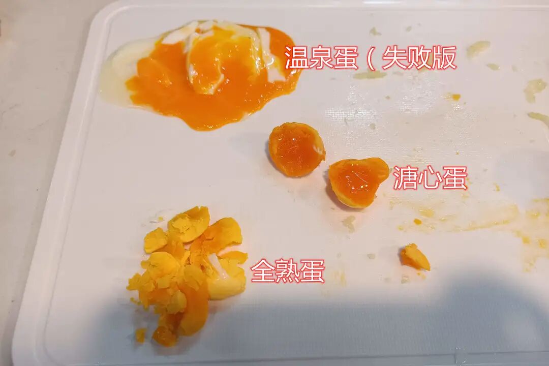 煮第一个温泉蛋的时候,凭感觉提前了1分钟拿出来,结果温泉蛋没成型,建议大家严格按照计时器的颜色来判断。