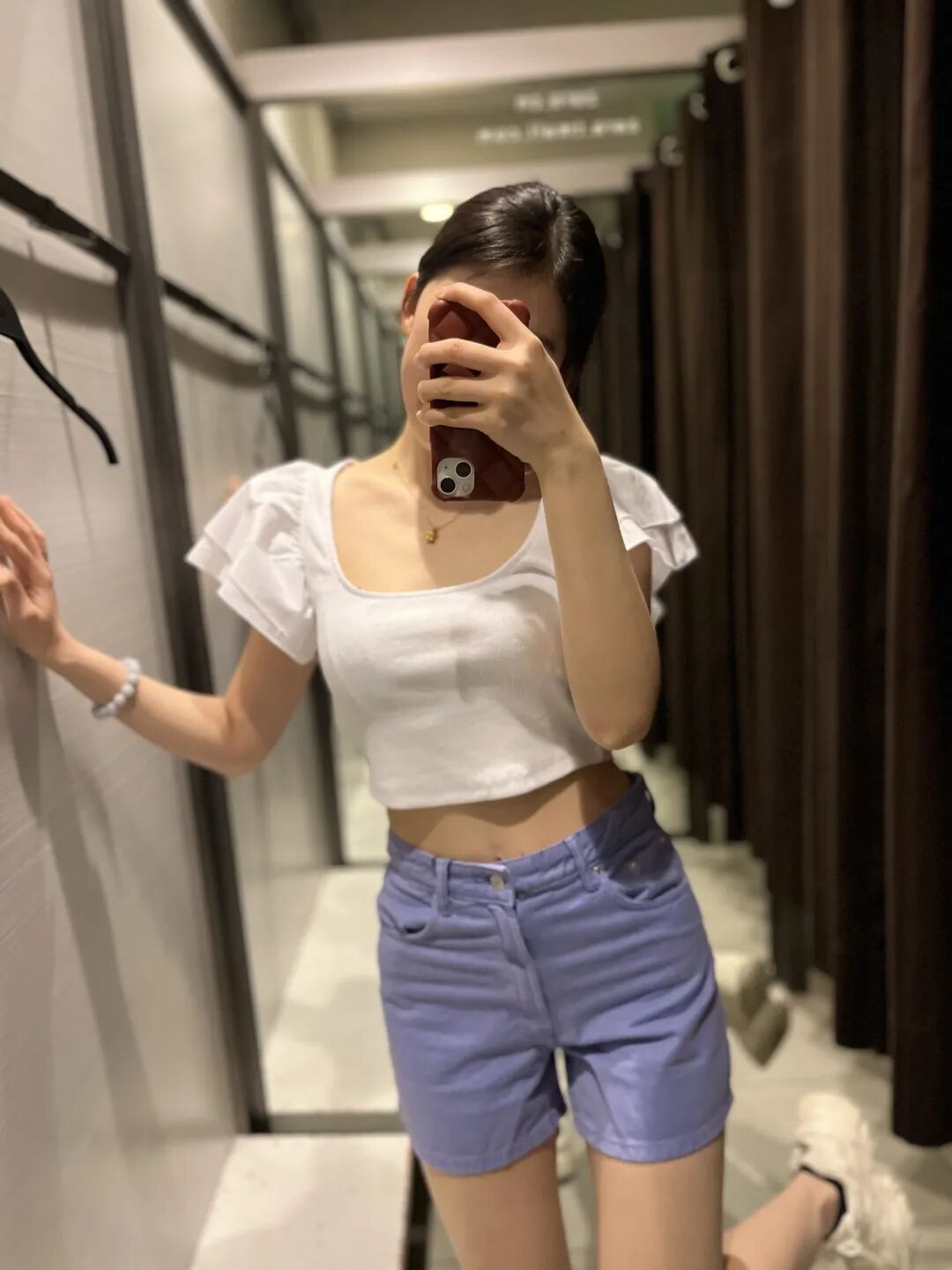 露脐白T配香芋紫短裤,又甜又辣。活泼的气质一下子就凸显出来。