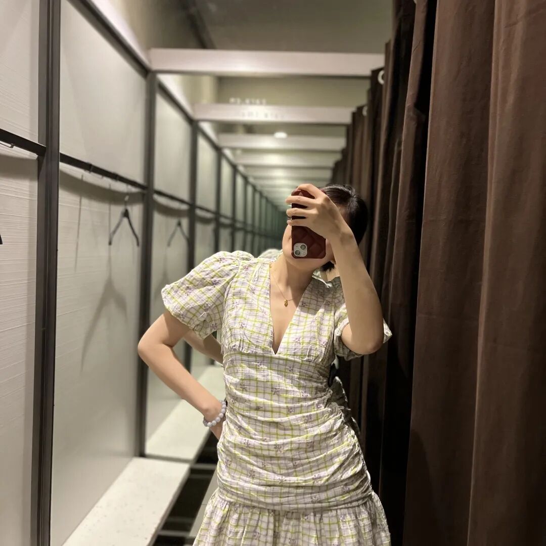 腰间的褶皱设计,完美地遮住了肚子上的赘肉