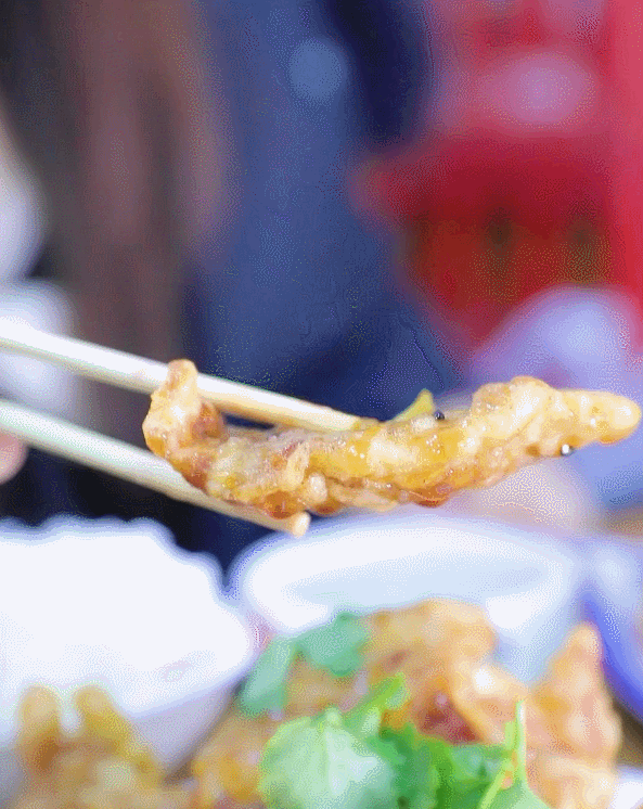 里面的肉不柴不干,配上酸甜口的汁儿,尝一口立马觉得:啥都值了。