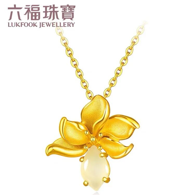 六福珠宝 白玉兰黄金项链..........01