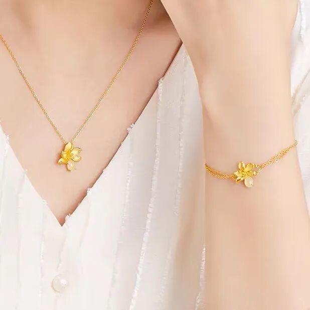 六福珠宝这款黄金白玉兰项链,以优雅秀丽的玉兰为款,材质融合了金的雅致和玉的温润,戴上尽显气质与优雅。图源品牌官方旗舰店