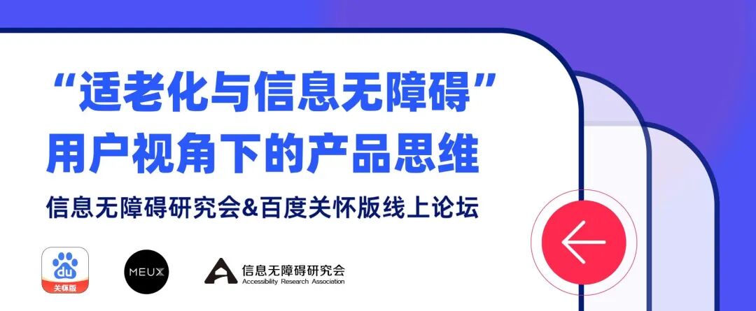 随着我国逐渐走向人口老龄化社会,广大老年群体和残障人士也享受着信息科技发展所带来的便捷服务,信息无障碍体系建设在我国也取得了长足发展,但离消除“数字信息鸿沟”还有距离。3月24日下午,由百度MEUX与信息无障碍研究会共同发起的“适老化与信息无障碍设计线上论坛”如期举办,本次活动特别邀请中国信息通信研究院专家丁丽婷、信息无障碍研究会专家陈澜,为我们带来行业最新动态。同时,百度关怀版产品、设计、用研同学也分享了在互联网产品适老化方面的思考及实践,一起为银发人群的福祉而设计,共同促进包容性信息社会建设。首先,中国信息通信研究院专家丁丽婷做了《APP适老化、无障碍改造情况及下一步研究工作重点》的分享,她提到,我国智能终端、移动互联网应用在研发设计时,普遍缺少通用设计理念和意识,对残疾人、老年人等群体的需求考虑较少,网站、APP等互联网应用无障碍普及率较低,适老化改造仍处于起步阶段。未来,应继续推动信息无障碍发展,加快新技术与无障碍领域融合,推动无障碍环境设施设备数字化转型,多形式多手段鼓励产品技术研发与普及,推动网站和移动互联网应用无障碍优化,助力老年人、残疾人跨越数字鸿沟,在“用得上”、“用得起”的基础上,重点推动“用的好”的工作。随后,丁丽婷专家向大家分享了互联网应用适老化、无障碍化下一步工作重点:推动省、市级互联网应用的适老化、无障碍化改造;将小程序纳入改造范围。一方面用户通过网站、小程序、电话等反馈问题及意见,另一方面,对通过评测的APP持续运营维护进行监督,督导企业将适老化、无障碍化理念融入产品的全生命周期,纳入运营维护的日常流程中,不断提升互联网应用适老化的质量。