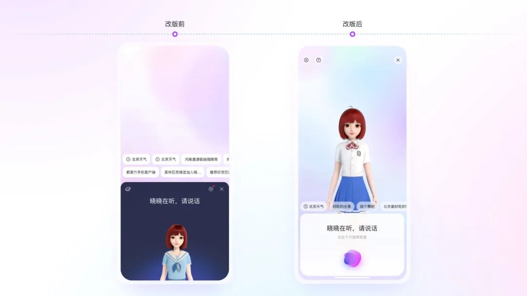 除了通过框架层面进行认知优化之外,为营造更贴合“人”的互动体验与情感建立,我们又根据语音场景对每个状态进行了情感体验升级。改版上线后,用户闲聊诉求和互动点击行为均有所提升,从而验证情感化的体验提升,满足了用户互动诉求。