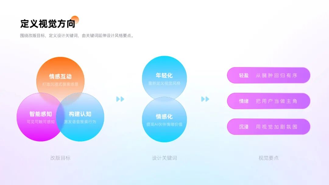 1)定义视觉风格:围绕改版目标,定义设计关键词,由关键词延伸设计风格要点。