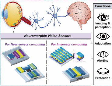 1. 使用光电突触电路和单器件光电子突触,实现近传感器和传感器内计算的神经形态视觉传感器。
