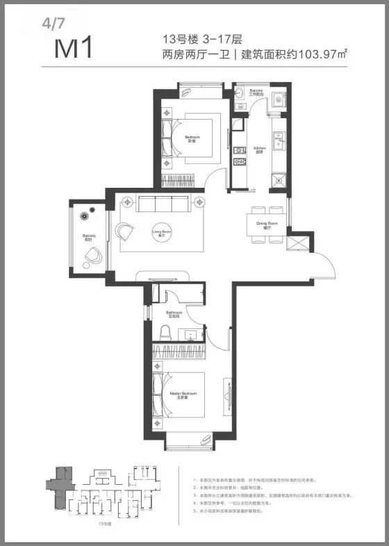 等等,103平怎么还是两房?而且卧室面积也就够用吧,两个都不会超过15平米。