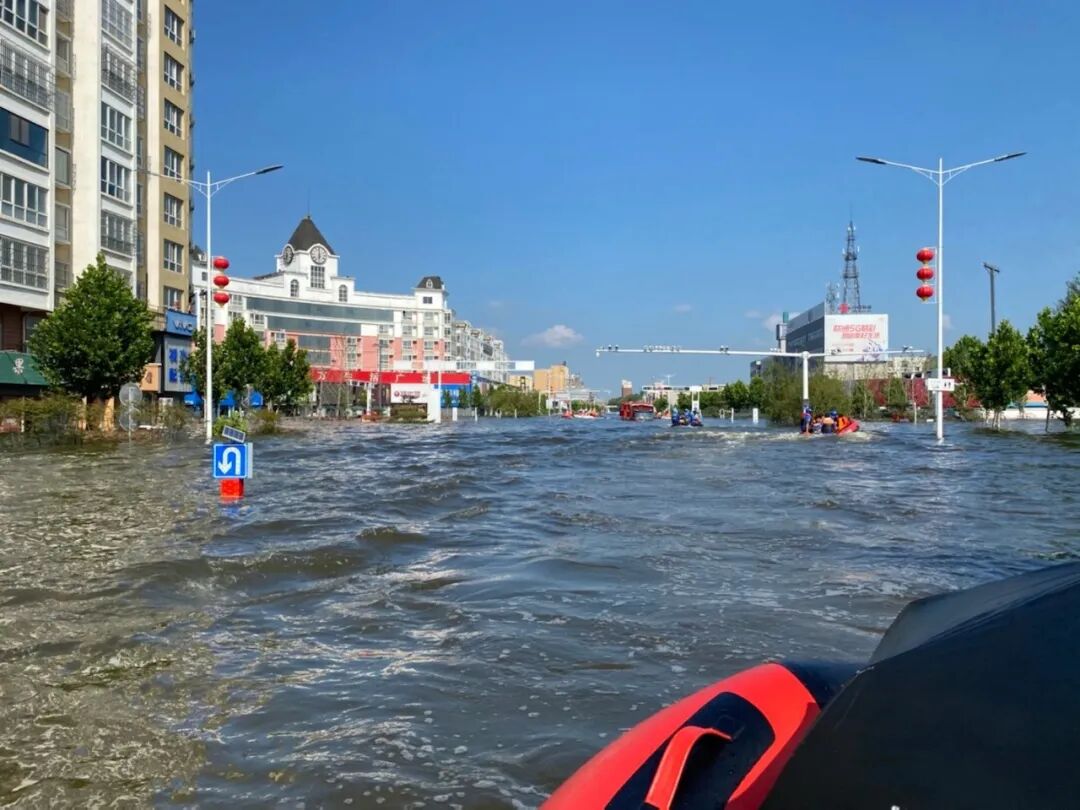 根据凤凰卫视记者霍伟伟的实地走访拍摄:当天,卫辉城区道路已成河道,全部交通靠水上冲锋舟完成,但幸运的是: