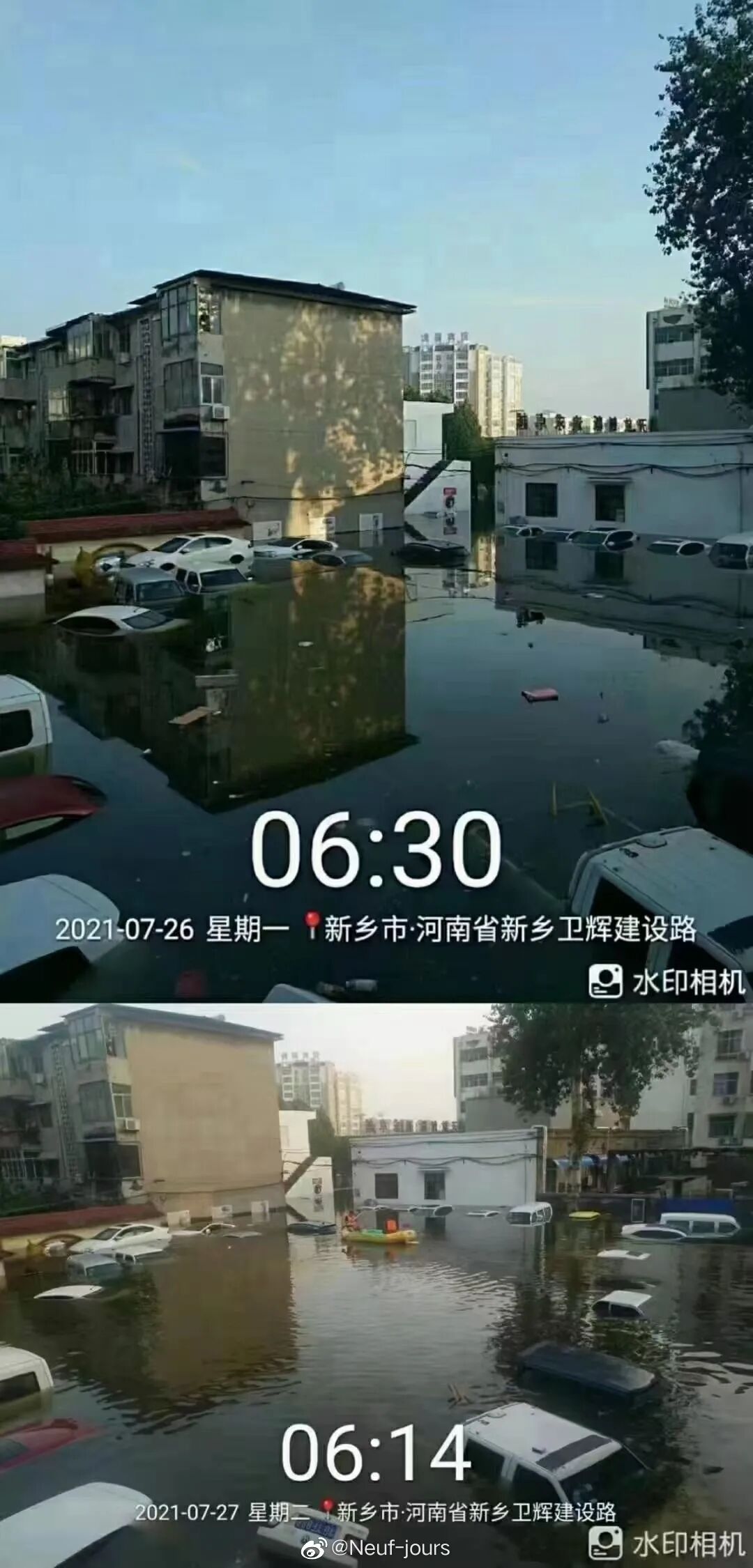 早上5点,据@OBObiviate讲述,水位并没有降低,且自己所在的小区积水深度已达膝盖。而此刻卫辉业已陷入停水、停电、没信号,无法通过网络得知情况亦无法与外界取得联系的境地。