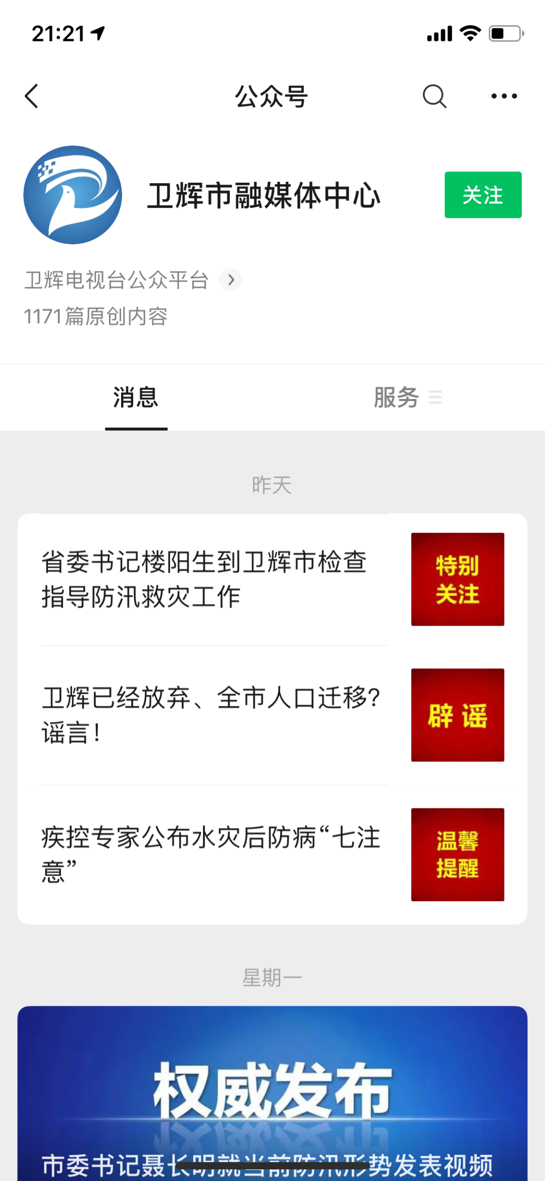 也许是一部分水情的确得到了控制,7月27日凌晨2点多,卫辉市融媒体中心的微信账号突然在深夜,发布了一则让所有卫辉市民意外的推送: