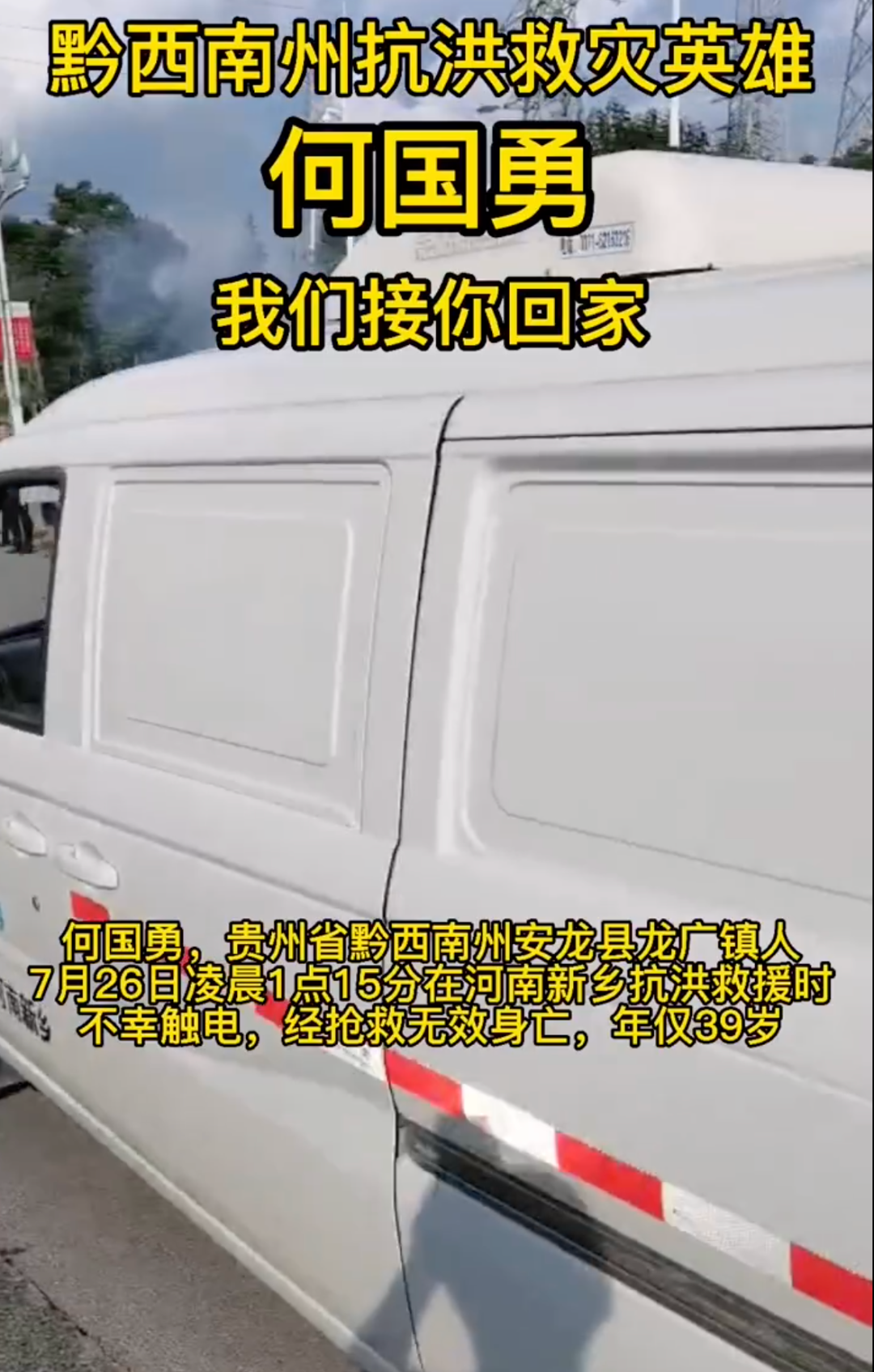 卫辉救灾中,还有一位好人牺牲于做好事:来自贵州某救援队的队员何国勇,在水下作业时不幸触电牺牲。