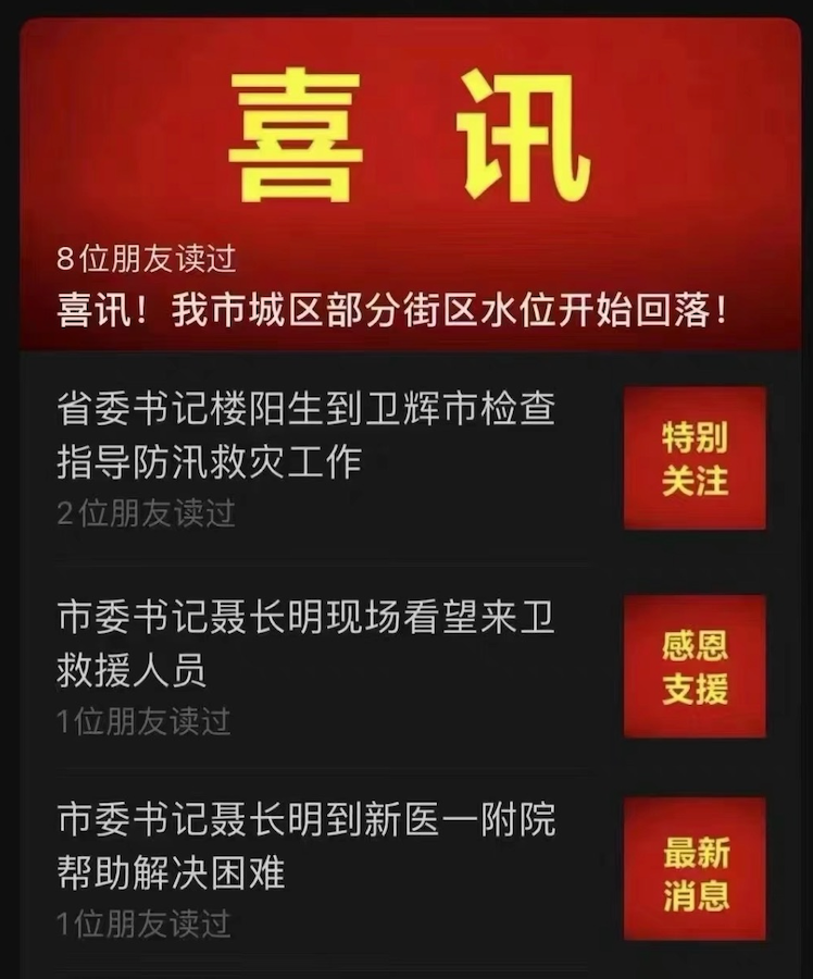 7月27日,距离卫辉官方的凌晨喜讯又过去了几个小时后: