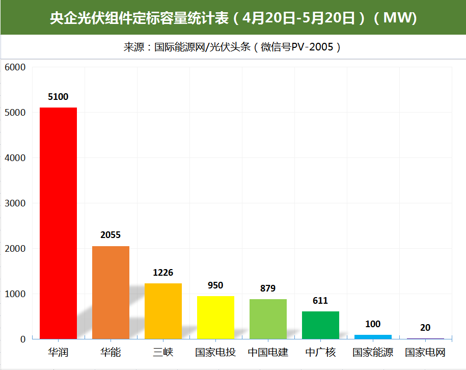 其中,华润5.1GW采购项目,华能2GW,以及三峡集团多个集采、招标项目定标。具体央企采购情况见下表。