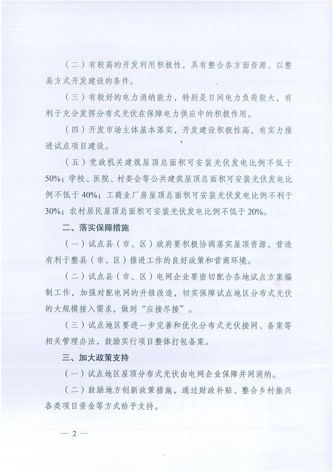文件指出申请试点条件,要求具有丰富的屋顶资源;有较高的开发利用积极性;有较好的电力消纳能力;开发市场主体基本落实,开发建设积极性高,有实力推进试点项目建设。