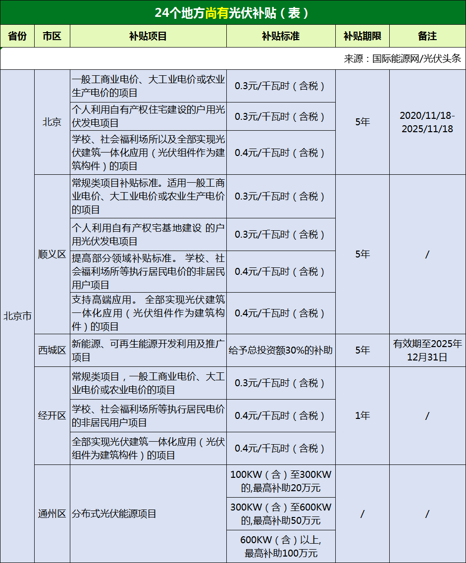 2020年11月18日,北京市发改委、财政局、住建委联合下发《关于进一步支持光伏发电系统推广应用的通知》,提出: