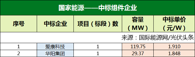 国际能源网/光伏头条(PV-2005)统计显示,央企依然是本统计周期招标采购市场的主力军,5月下旬以来,国家电投、华能、国投、三峡、中国电建、国家能源、南方电网等七大央企总计有43个项目(标段)定标,采购容量11.12GW。其中,国家电投4.95GW采购项目,华能2GW,以及三峡集团、中国电建多个集采、招标项目定标。具体央企采购情况见下表。国家电投作为5月下旬以来定标容量最大的央企,定标规模4.95GW,其中1350MW是招标容量,另外3600MW是储备容量。该项目定标价格在1.84~2元/W之间。隆基股份、亿晶光电、天合光能、晶澳科技、晶科能源、正泰太阳能最终入围中标名单。华能2GW集采项目于5月24日确定最终中标人,晶澳科技、天合光能、晶科能源三家企业成为最后赢家。其中,晶澳科技不仅中标第一标段,而且还中标第4标段即N型组件采购标段。中国电建5月下旬以来,定标19个项目,确定容量1260.06MW,具体中标企业如下:5月下旬以来,国投集团雅砻江两河口水电站水光互补一期项目光伏电站太阳能光伏组件设备采购项目三个标段确定了中标候选人,正泰太阳能、晶澳科技、晶科能源位列一、二、三标段第一名,具体情况如下:三峡集团有5个项目(标段)定标,一道新能、隆基股份、晶澳科技成为最终赢家,且中标价格都在1.95元/W左右。国家能源集团有2个项目定标,合计容量149.12MW,具体中标企业如下:此外,南方电网3.2MW光伏组件采购项目定标,东峻阳光(厦门)新能源有限公司中标,中标单价为1.942元/W。相比国际能源网/光伏头条(PV-2005)上个统计周期,地方企业4.05GW组件采购项目定标,5月下旬以来地方企业组件采购不论是定标数量还是项目容量都大大减少。平煤神马集团、京能集团、豫能控股等11家地方企业,定标组件采购项目11个,定标容量1.27GW。其中平煤神马集团700MW集采项目定标,排名第一企业定标容量榜头名。除此之外,豫能控股、京能集团、甘肃黑河能源开发有限责任公司均有百兆瓦以上项目定标。