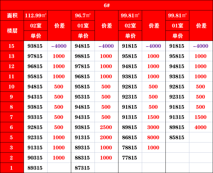 - 1#与3#、4#、6#价差偏大,同样99㎡左右3房,1#比3、4、6#贵约8.7%,进入二手市场较难维持同等差幅。