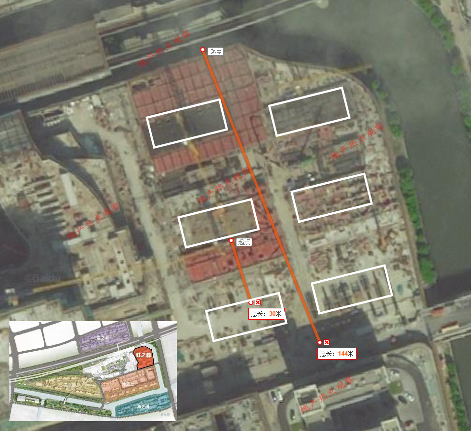 我大致用它的鸟瞰图和卫星地图结合,算出了它的栋距大概在30米左右,楼栋距/楼高约为67%。