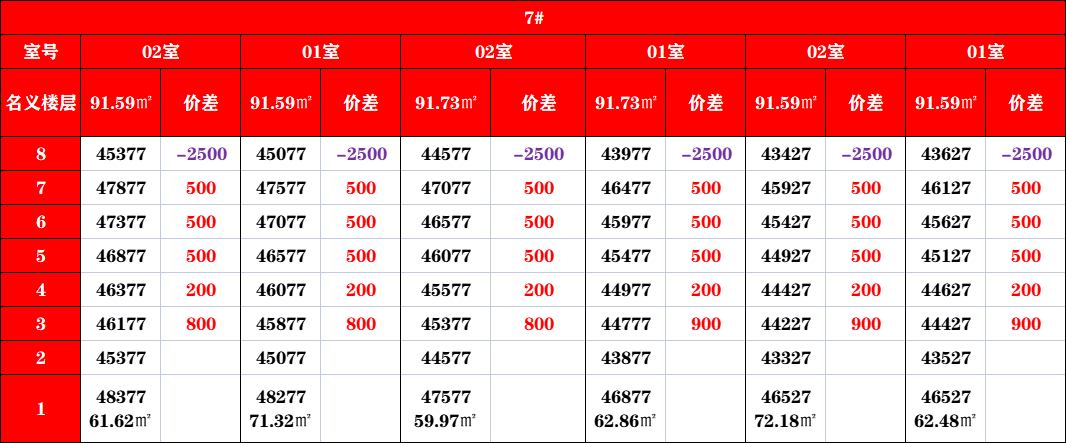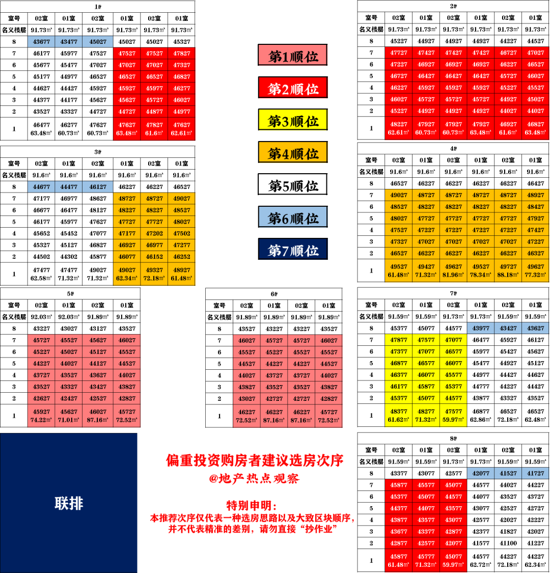 7#不利因素最多,楼栋价值最差,优先选择东边的楼栋以及一楼;