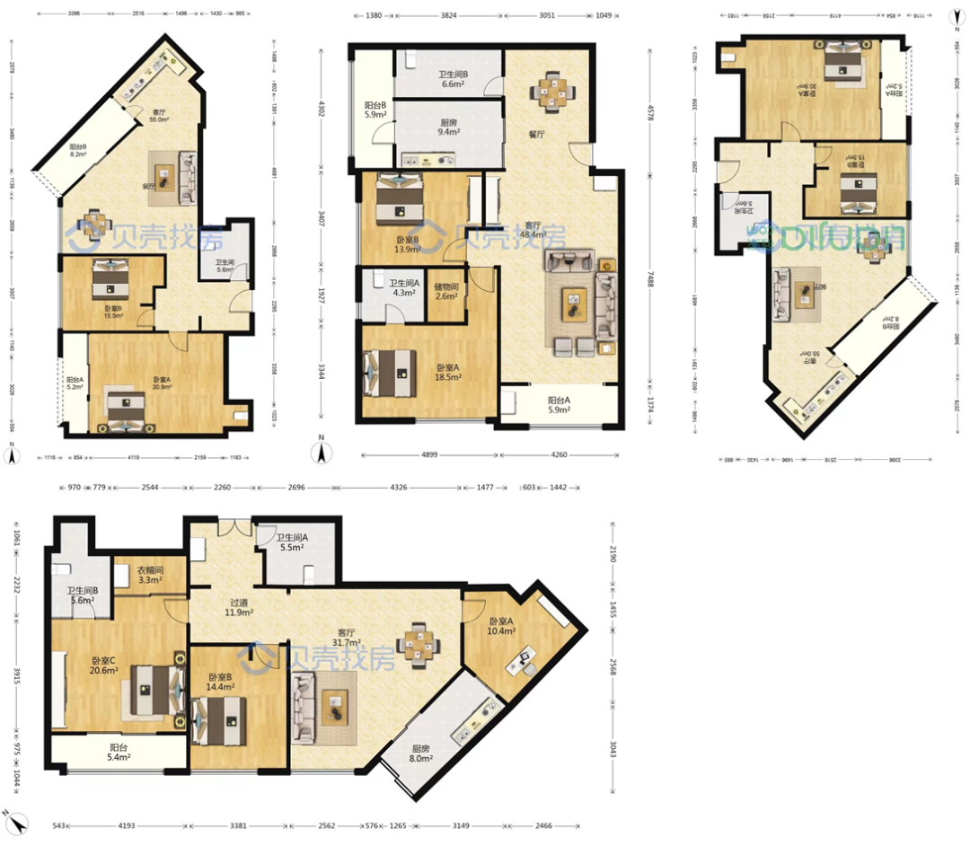 都是下图所示的150㎡左右大户型,