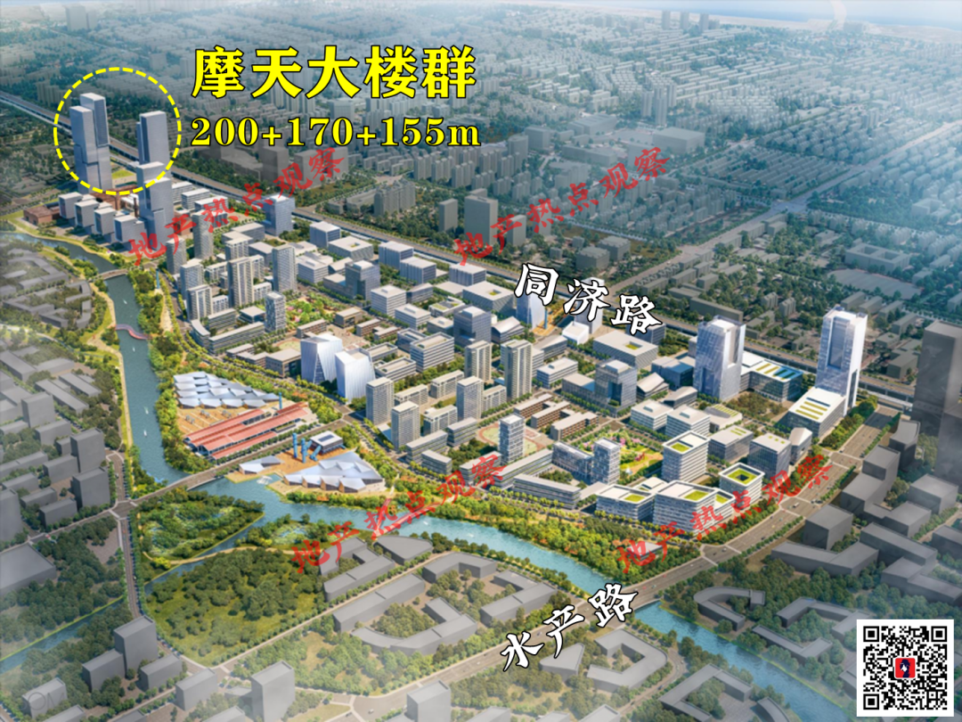 (根据规划,吴淞产业特定区-3单元(BSP0-0903)01街坊地块,将打造3栋摩天大楼的高度分别为200米、170米和155米。)