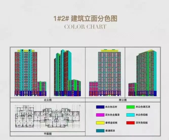 反倒是北侧立面,基本都用上了铝板,南侧主力面反倒涂料占比不少