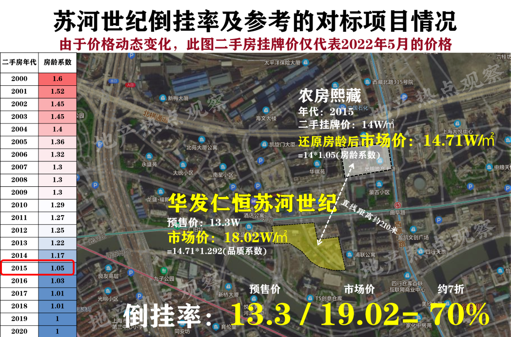 我们测算出的苏河世纪倒挂率在68折左右
