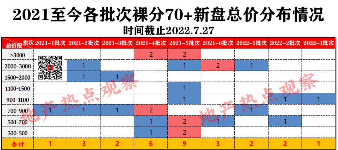 由于疫情等多重因素的影响,同板块新盘积分较去年有了较大幅度下滑,入围门槛更加亲民。今年2批次以来,特别是1100w以上的新盘,高分项目大大减少。