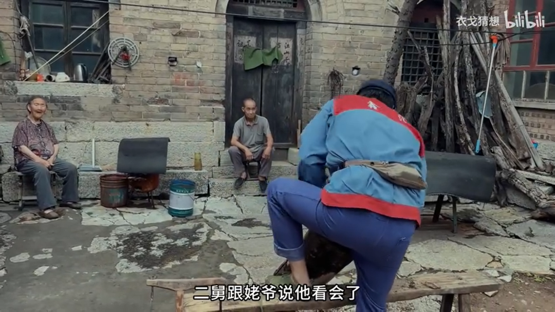 视频中,二舅是在他村子里不可或缺的人物,他承担着帮助村子里的人们修理各种物件的任务。这也很好地映照了费孝通在《乡土中国》里对于城乡差序格局的叙述。