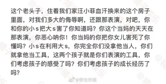 这两天,汪小菲疯狂输出,将徐家所有人都骂了个遍,却唯独绕过了最关键人物大S,没说她一句不是。