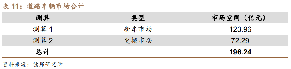 3. 道路车辆市场需求测算:国六有望带来翻倍市场空间