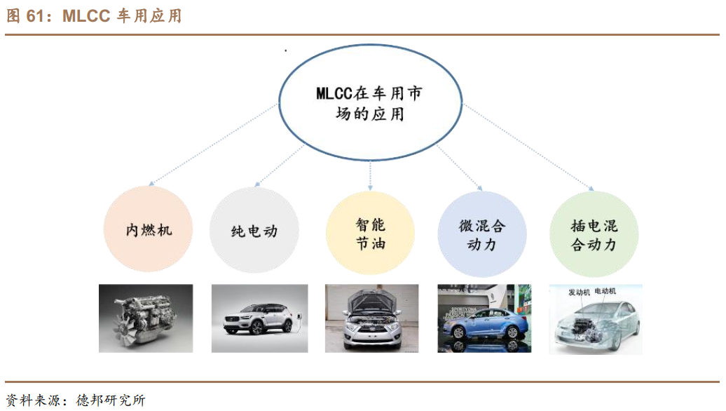 切入车用领域,车用市场前景可期。MLCC广泛应用于动力引擎、转向引擎、再生制动、发动机驱动等多个环节。公司产品目前已切入车用领域,2020年已有批量出货。随着汽车电子化、新能源化的发展,MLCC在车用市场的需求逐年上升。据Murata数据,传统燃油车动力系统仅需450-600颗常规型号MLCC,而纯电动车需求数量则翻了近5倍,为2700-3100颗,且均为高端型号产品。我们认为在新能源汽车渗透加速和汽车智能化配件普及的双重作用下,未来车用MLCC市场的发展值得期待。
