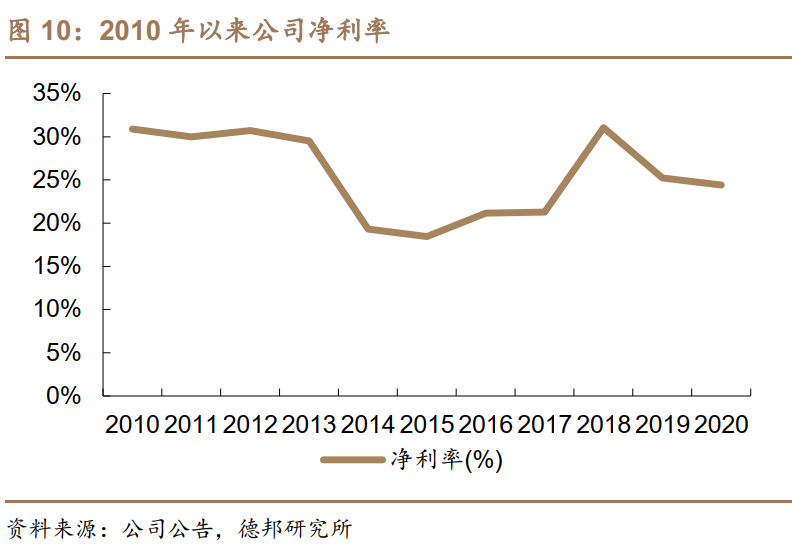 产品结构持续优化,利润率保持高位。2013年以前,公司MLCC配方粉业务占比超过98%,业务相对单一,利润率受MLCC行业周期性影响较大。2014年,受到日元贬值以及三星业务收缩的影响,公司采取了主动降价策略以巩固产品性价比优势;此外,其他新产品处于放量初期,整体利润率有所下滑。2014年以来,随着氧化锆、陶瓷墨水等板块业绩逐渐放量,公司业绩周期性减弱,毛利率和净利率逐渐趋于稳定。2017年至今,公司持续布局蜂窝陶瓷、齿科等高利润率业务,产品结构持续优化,毛利率和净利率整体呈上升趋势。2020年毛利率达到了46.34%,净利率为24.43%,盈利能力保持在较高水平。