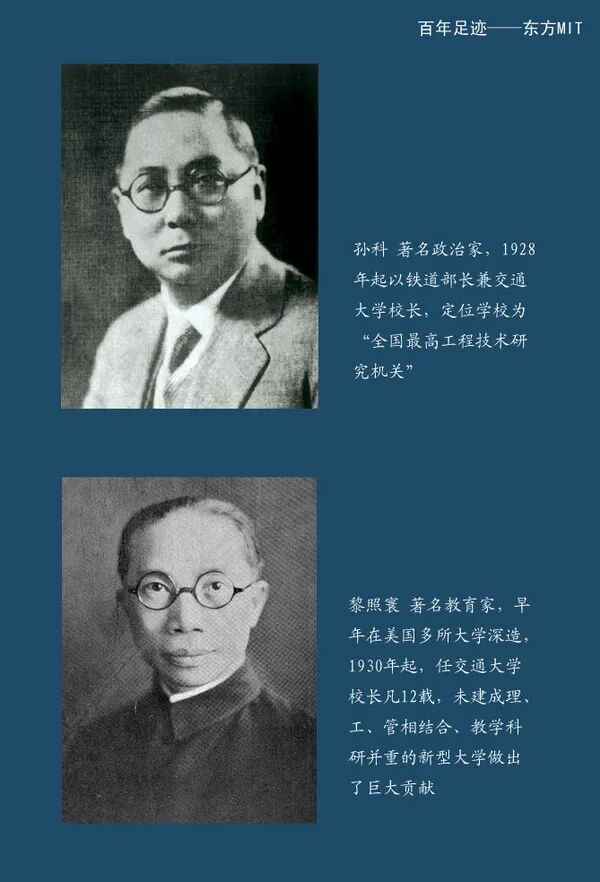 1895年8月,邮传部大臣盛宣怀(杏荪)率先在天津创办中西学堂,并擘画尽快形成南北呼应之势。1896年3月,盛宣怀经奏准在上海设立南洋公学,立即捐购建校基地,经费则来自招商、电报两局拨款。南洋公学创办伊始,当年中国之大上海,既缺乏能够接受新式中高等教育的现成生源,又缺少可从事新式教育的现成师资,故不得不先从举办师范教育与小学教育入手。1897年4月8日,南洋公学师范院首批40名学生正式开学,附设外院学堂(相当实验小学)则首批招生120名。同年颁布《南洋公学章程》,何嗣焜(梅生)先生任公学总理,延请美国传教士波士顿大学毕业生福开森(John.C.Ferguson)博士任公学监院,并负责规划设计上院(相当大学)与中院(相当中学)。1898年春,中院开学,设译书院,始派留学生赴日本深造。1900年,上院开学。1901年,鉴于国家急需经济人才,设经济特科,延请蔡元培先生为主任教员,并开设政治特科与改设高等小学堂。中院第一届学生毕业,其中4人被选派赴英国留学。张元济(菊生)任总理不久便卸职,尔后本校数易总理或监督。1903年,添设高等商务科,高等小学第一届学生毕业。1904年,中院改称高等预科,本校改隶商部。1905年,本校易名为商部上海高等实业学堂。1906年,设商务专科与铁路专科,本校复改隶邮传部,易名为邮传部上海高等实业学堂。1907年,商务科第一届学生毕业。唐文治(蔚芝)先生到校任监督,苦心经营,整顿校务,学校日益发展。1908年,设国文科与电机专科(三年制)。1909年,设航海科,中院及高等预科改为中学,铁路科第一届学生毕业。1910年设西文科。1911年,电机科第一届学生毕业。辛亥革命爆发,本校学生组织义勇军,积极响应上海起义。