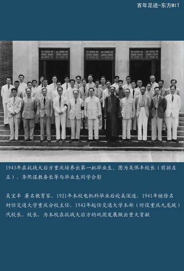 日本帝国主义侵占东北,民族危亡迫在眉睫。1935年,交大同学声援“一二·九”救亡运动,驾火车进南京请愿,要求当局接受全国人民的抗日要求。1936年,全校师生发起援绥运动,节食捐款支援前线抗日将士。1937年芦沟桥事变后,交大人在抗日战争中与日本帝国主义进行了各种形式的顽强斗争。1937年8月,本校划归教育部管辖,改名国立交通大学,将原电机工程学院、机械工程学院、土木工程学院降格为三个系。原科学院改为理学院,管理学院则停办。11月,日军占领上海,徐家汇校舍为日寇强占,本校迁入法国租界,借震旦大学与中华学艺社部分房屋,继续办学。1939年,重庆校友致函,请母校内迁。1940年,教育部批准设立交大重庆分校(渝校),暂借重庆小龙坎无线电制造厂部分房屋办学,同时在九龙坡建立校舍。建电机与机械二系,以校友徐名材(伯隽)先生为分校主任。1941年,改由吴保丰(嘉谷)先生任重庆分校主任。同年十二月,太平洋战争爆发,日寇占领上海租界,不久沪校强被汪伪政权接收,在法国租界坚持办学的大部分师生纷纷内迁渝校。1942年,教育部令渝校为国立交通大学本部,任命吴保丰为代理校长,设土木、电机、机械、航空、管理五系,九龙坡校舍建成。1943年,渝校增设造船、运输管理、财务管理、工业管理四系及轮船、驾驶两专科,筹建工科(电信)研究所。1944年,工科研究所首次招收研究生10名。1945年,渝校在校学生已达1340人,添办电信管理系与电信专科,而轮机与航海两个专修科改为系(四年制)。抗日战争胜利后,自1945年9月下旬起,本校开始陆续分期分批复员到上海。1946年5月复员工作胜利完成,渝校1240余名学生回到上海,沪校800余名学生亦全部集中,共同汇合于徐家汇交大校园。渝校(重庆本部)之历史宣告结束,恢复校名为国立交通大学,重建工学院(下设土木工程系、机械工程系、电机工程系、航空工程系、造船工程系、工业管理系、电信专修科、轮机专修科、航海专修科以及化学工程系、水利工程系、纺织工程系),理学院(下设数理化三系),管理学院(下设运输管理系、财务管理系、电信管理系、航业管理系)三院体制。12月,教育部下令停办轮机、航海两科,引起全校师生愤慨,自发成立护校委员会。1947年5月,2800余学生自驾火车、自修铁路,赴南京请愿,获得胜利,将轮机、航海两科扩大为轮机工程系与航海管理系。1948年,增设电信管理与电信技术两个专修科。从学校复员至解放前夕,国民党反动政府加紧内战,陷人民于水深火热之中,激化了国内矛盾。交大学生蔑视疯狂镇压,先后参加与发起了抗议驻华美军暴行运动、挽救教育危机运动、“反饥饿、反内战、反压迫”运动、抗议九龙暴行运动、反对美国扶持日本军国主义运动、反对学校驻扎国民党军队运动等政治斗争。学校校长也数易其人,吴保丰辞职后,程孝刚(叔时)、黎照寰(未到任)、王之卓等先生先后任交大校长。1949年初,人民解放战争节节胜利,国民党反动政府日薄西山。4月,学生自治会号召全校同学行动起来,组织了一支有1000多同学参加的地下人民保安队,师生一道巡逻护校,穆汉祥、史霄雯同学为人民的解放事业献出了年轻的生命。5月27日,解放军完全解放上海。6月15日,上海市军管会任命唐守愚为军代表接管交大,组成以吴有训、陈石英先生为正副主任的19人校务委员会,交通大学从此迎来了一个新纪元。