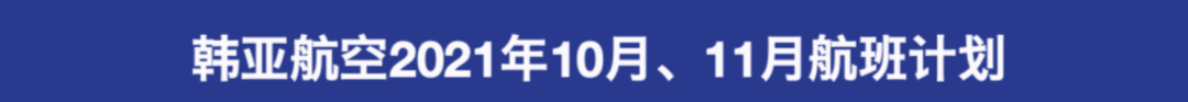 2021年11月,韩亚航空首尔(仁川)往返中国大陆地区4城详细航班计划如下: