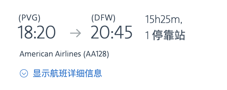 上海浦东-达拉斯 AA128 每周二/五